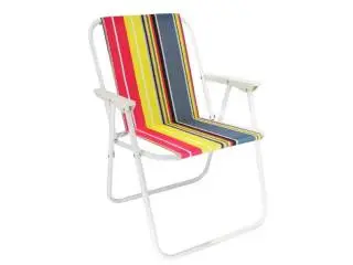 Silla plegable rayada.Material: lona oxford.Medidas aproximadas del producto: 52 x 46 x 74 cm.Diseño rayado multicolor.